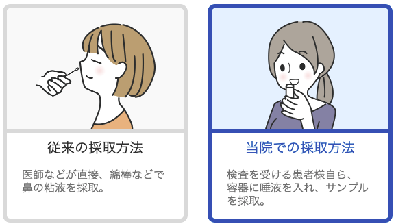 また、厚生労働科学研究においても鼻咽頭ぬぐい液とほぼ同じ精度で検査が可能という事が実証されており、安心してご利用いただけます。